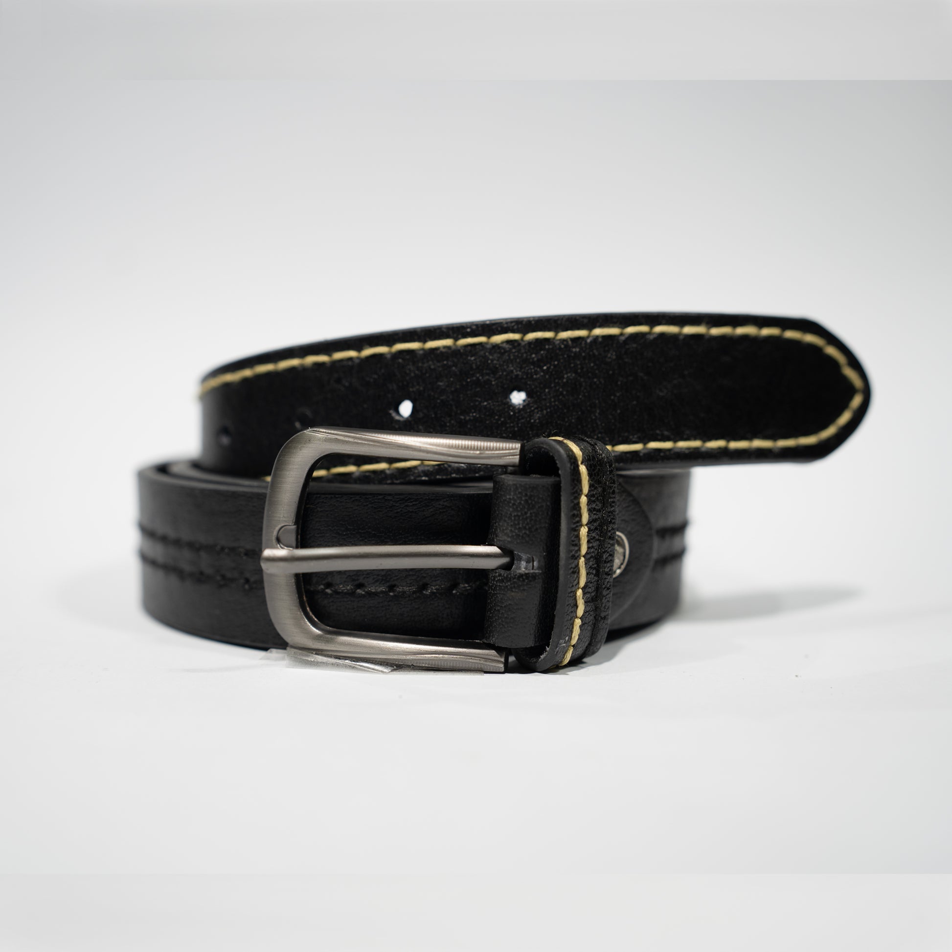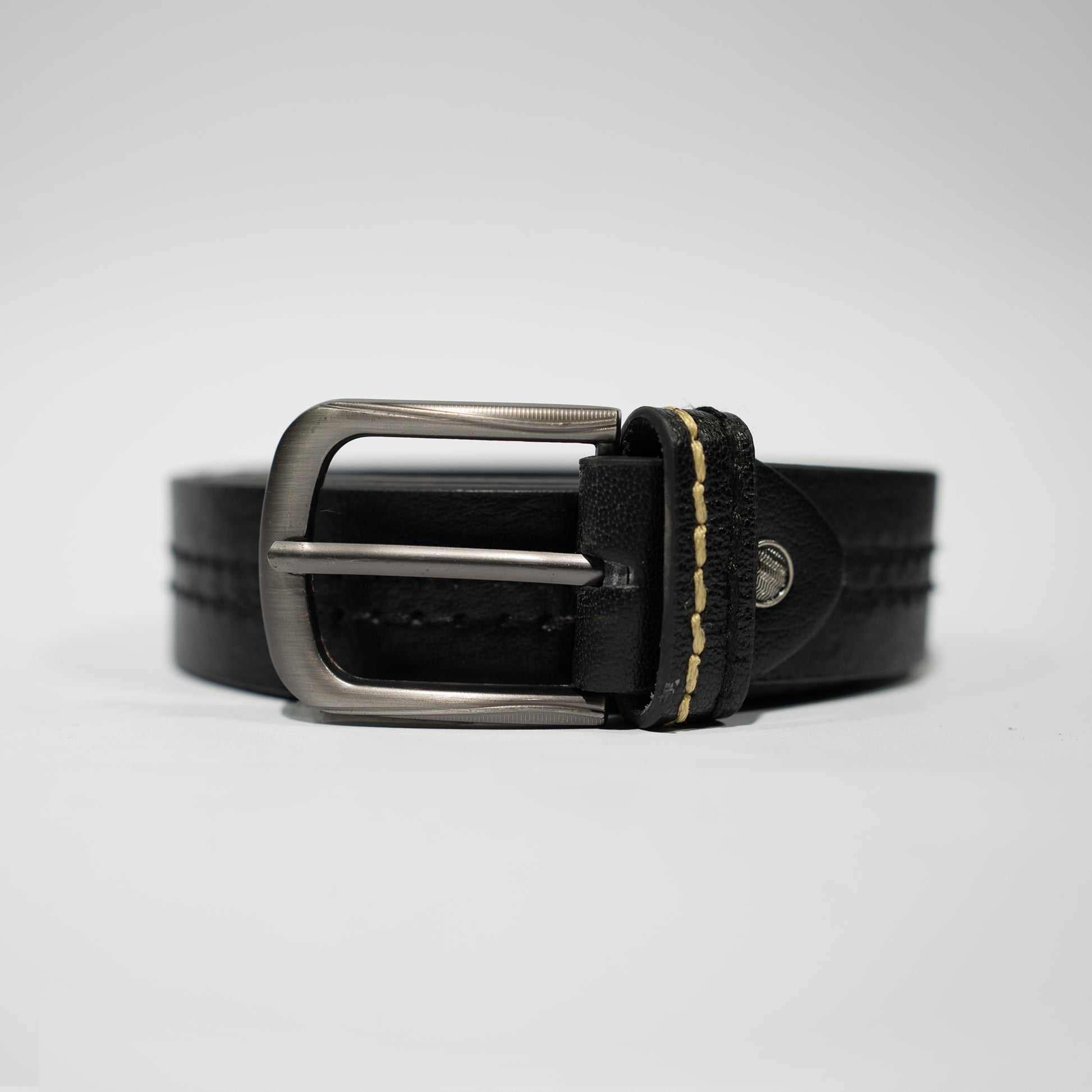 Black Genuine Leather Belt – Double Stitch Design with Classic Buckle