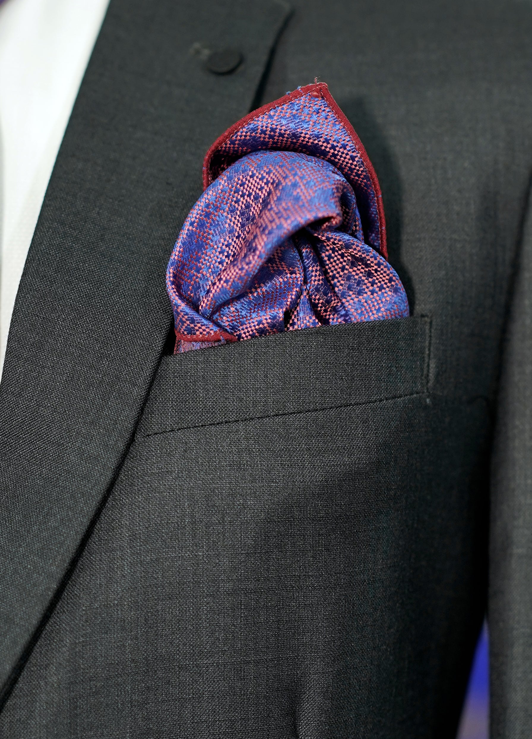 The blazer features notch lapels, a two-button closure, flap pockets, and a chest pocket with pocket square, while the trousers are designed with a refined slim cut for a flawless finish. Whether it’s a wedding, corporate event, or a high-profile evening, this suit ensures you look confident and stylish.