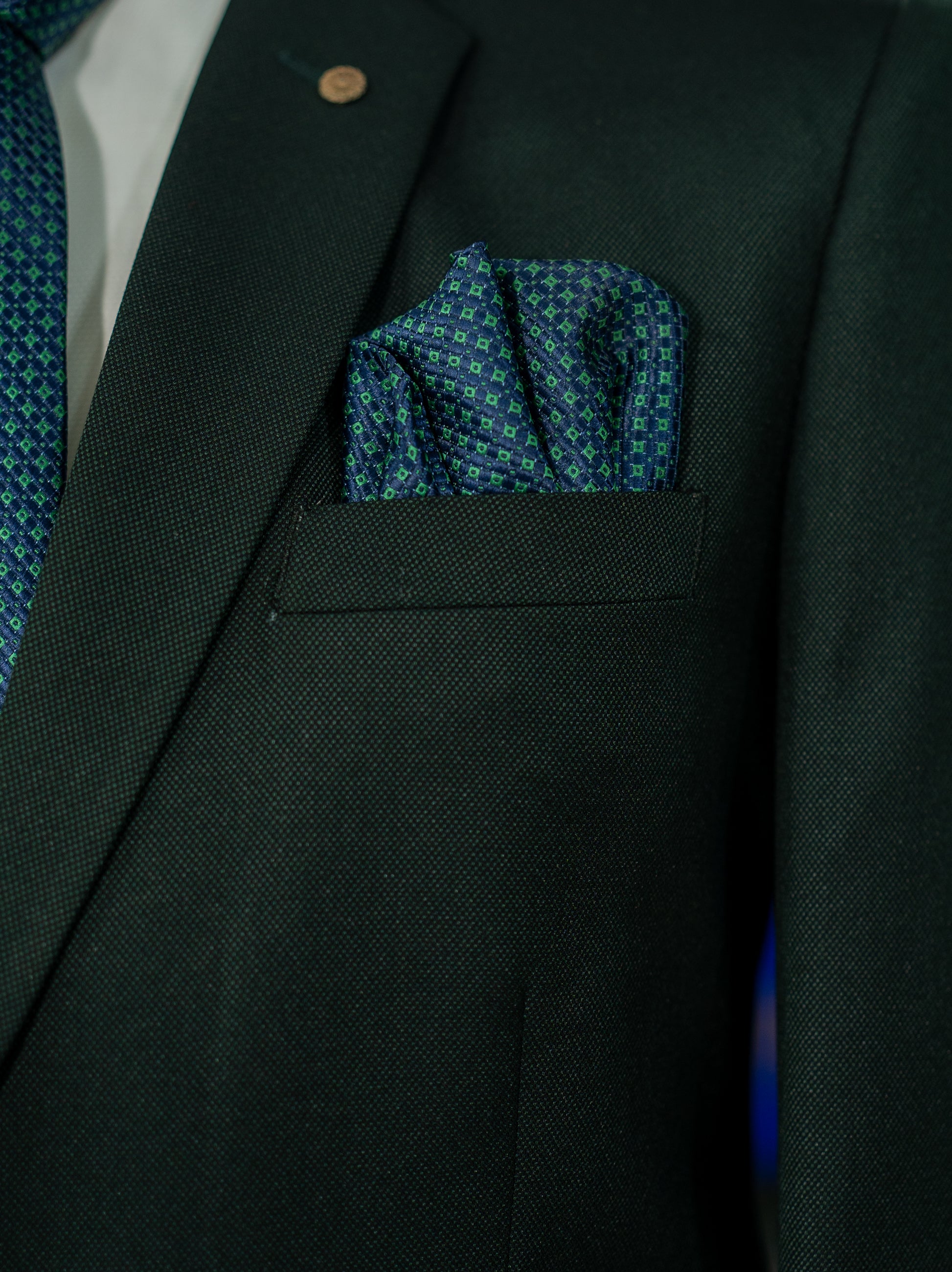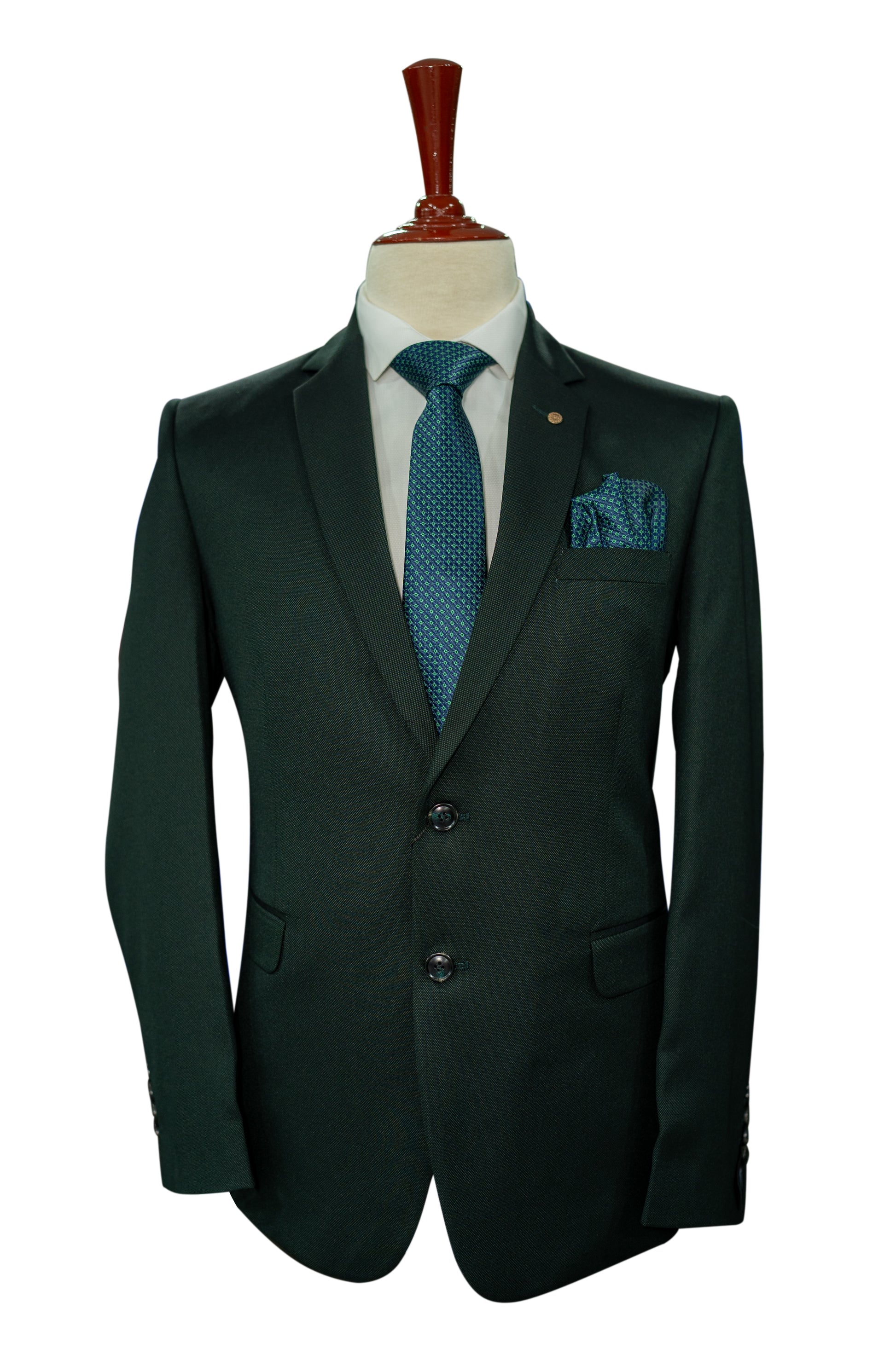The deep green tone adds a unique charm, offering a fresh alternative to traditional colors while maintaining timeless appeal. Styled with a sharp notch lapel, fine stitching, and a sleek silhouette, this suit ensures you look confident and distinguished on every occasion.