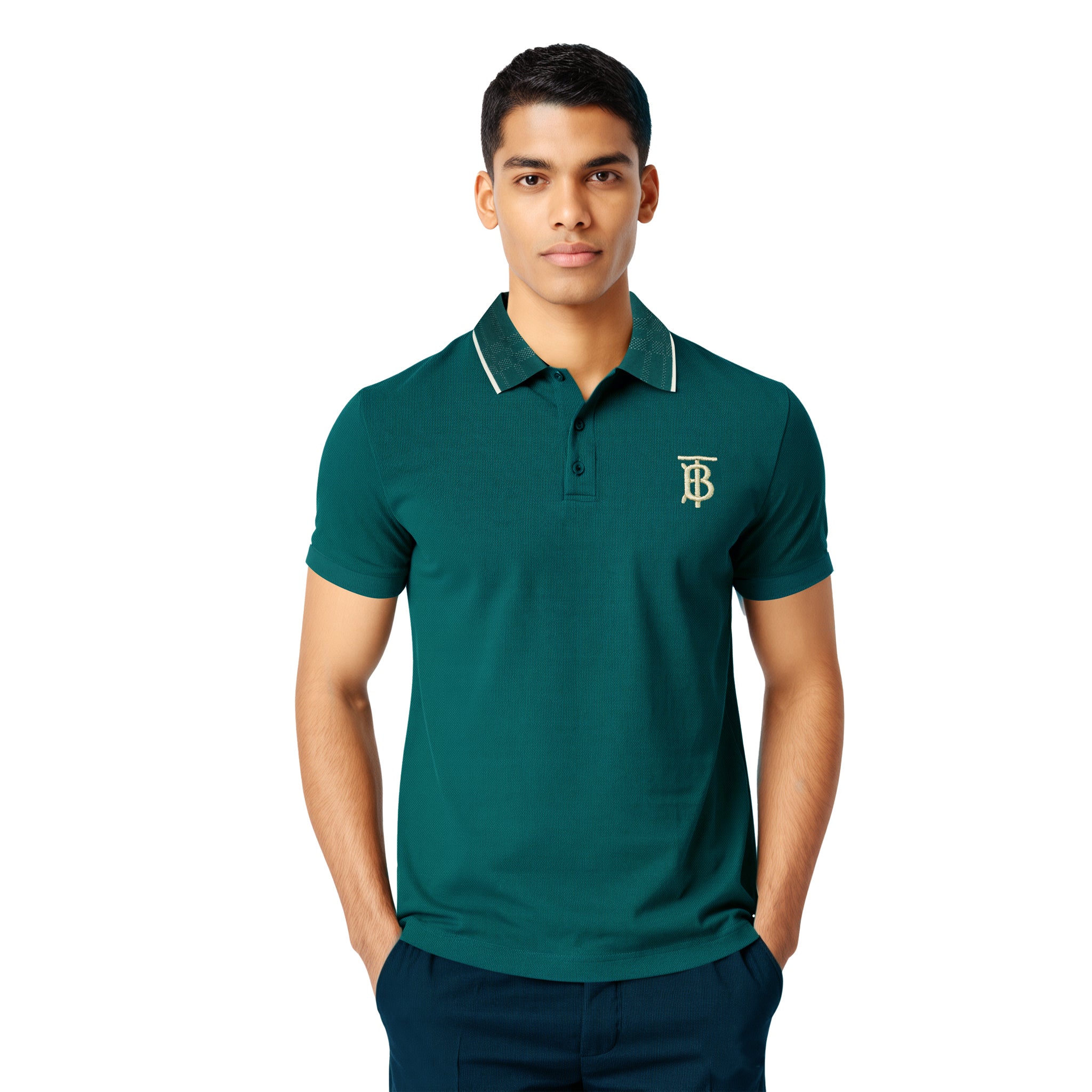 A refined take on casual wear, this green polo shirt features a golden “TB” embroidered logo on the chest for a premium finish. The collar is styled with subtle contrast detailing, adding elegance to the sporty design.