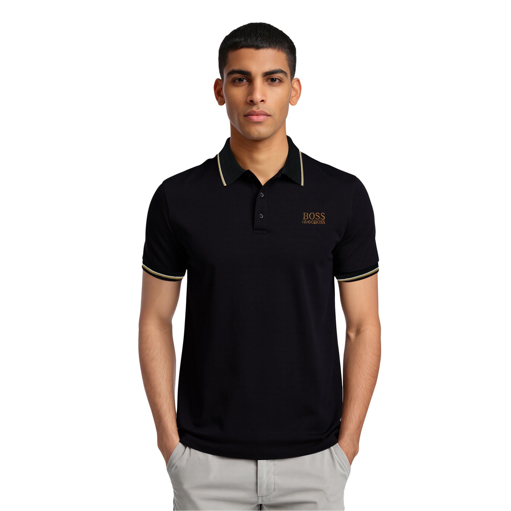 Hugo Boss Black Polo – Gold Logo & Contrast Trim