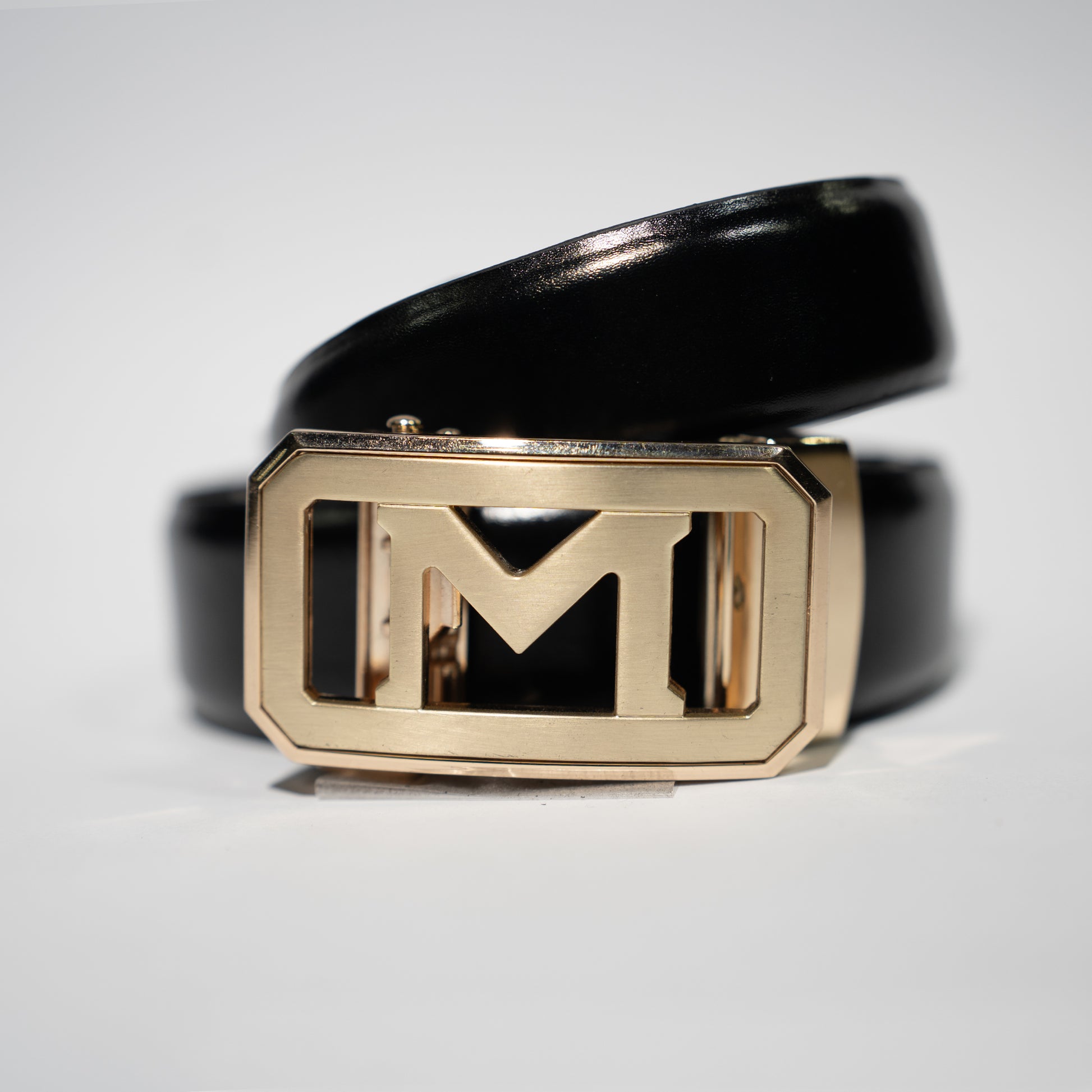 Buckle: Gold-plated “M” designer buckle