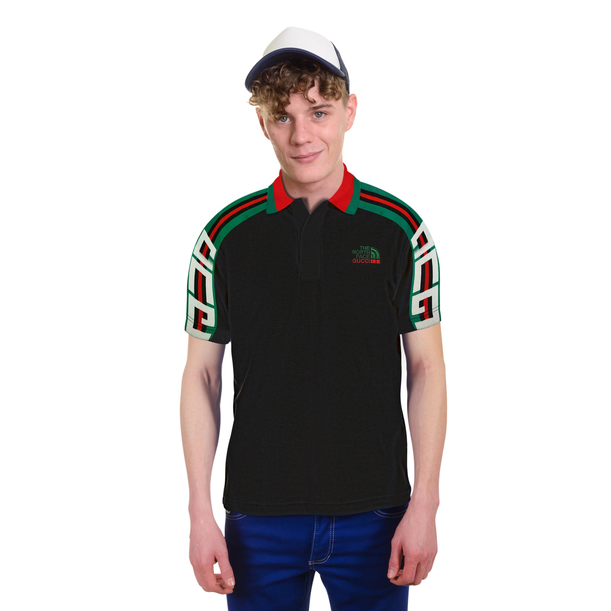 A classic black polo t-shirt designed with red and green stripe detailing on the shoulders. Made from soft, breathable cotton blend fabric that feels comfortable on the skin. Perfect slim fit for casual outings, daily wear, or pairing with jeans and trousers. Durable stitching ensures long-lasting quality.