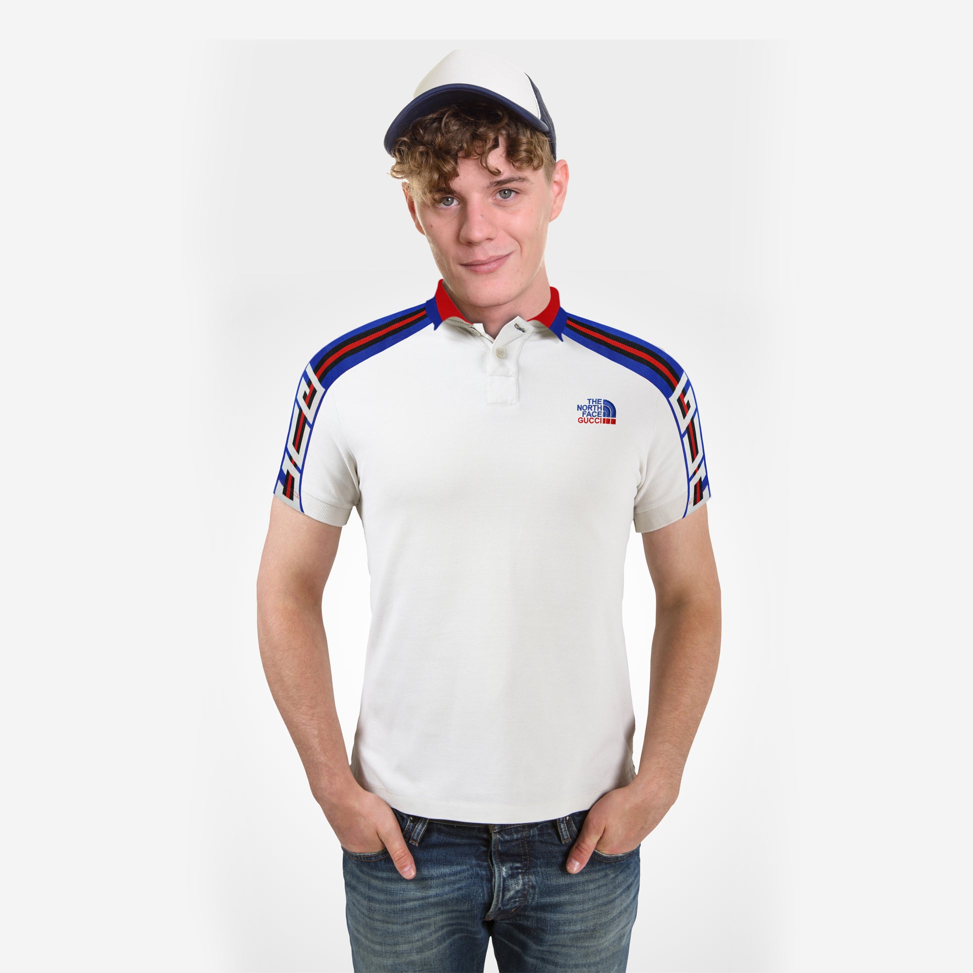 A classic white polo t-shirt with stylish red and blue stripe detailing on the shoulders. Made from a soft cotton blend fabric that is breathable, lightweight, and comfortable for all-day wear. Smart fit design with durable stitching makes it ideal for casual outings, office wear, and pairing with jeans or chinos.